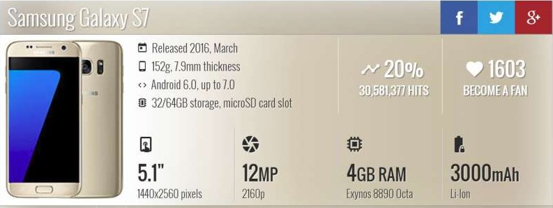 microSD, up to 256 GB (dedicated slot) - single-SIM model (G930F, G930W8) |